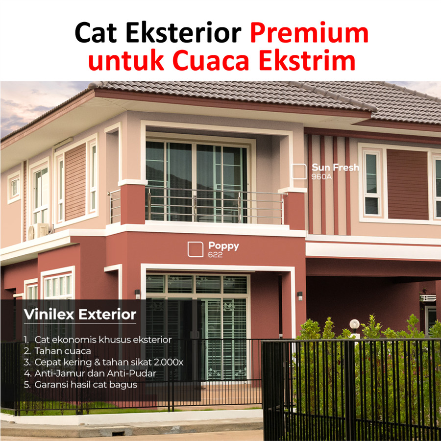 Tampilan akhir semi gloss, tahan kelupas dan pengapuran cat tembok eksterior Nippon Weatherbond tampil memukau untuk dinding Anda.
