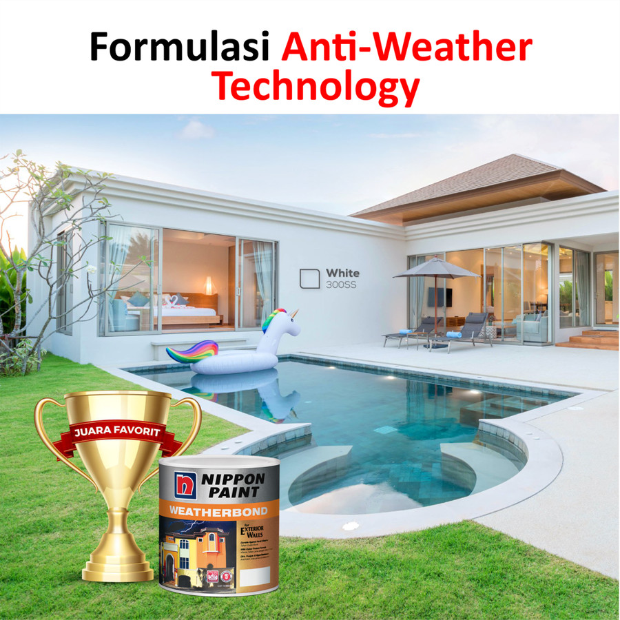 Nippon Weatherbond adalah cat berkualitas tinggi dengan bahan dasar emulsi akrilik yang cocok untuk pemakaian eksterior.