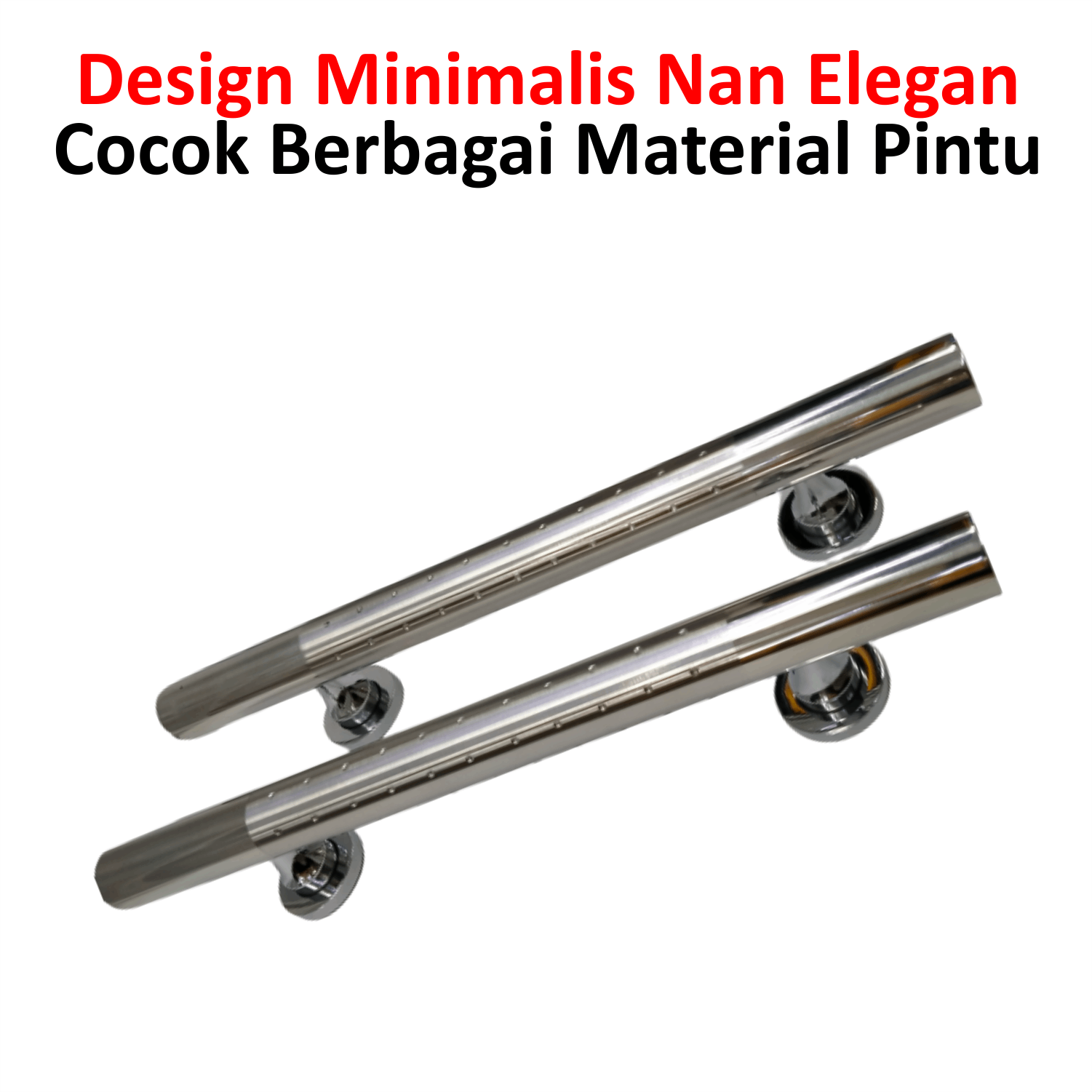 Designnya minimalis berlapis kilau elegan tampak modern. Dua tuas serasi untuk pemasangan pintu bukaan ganda.