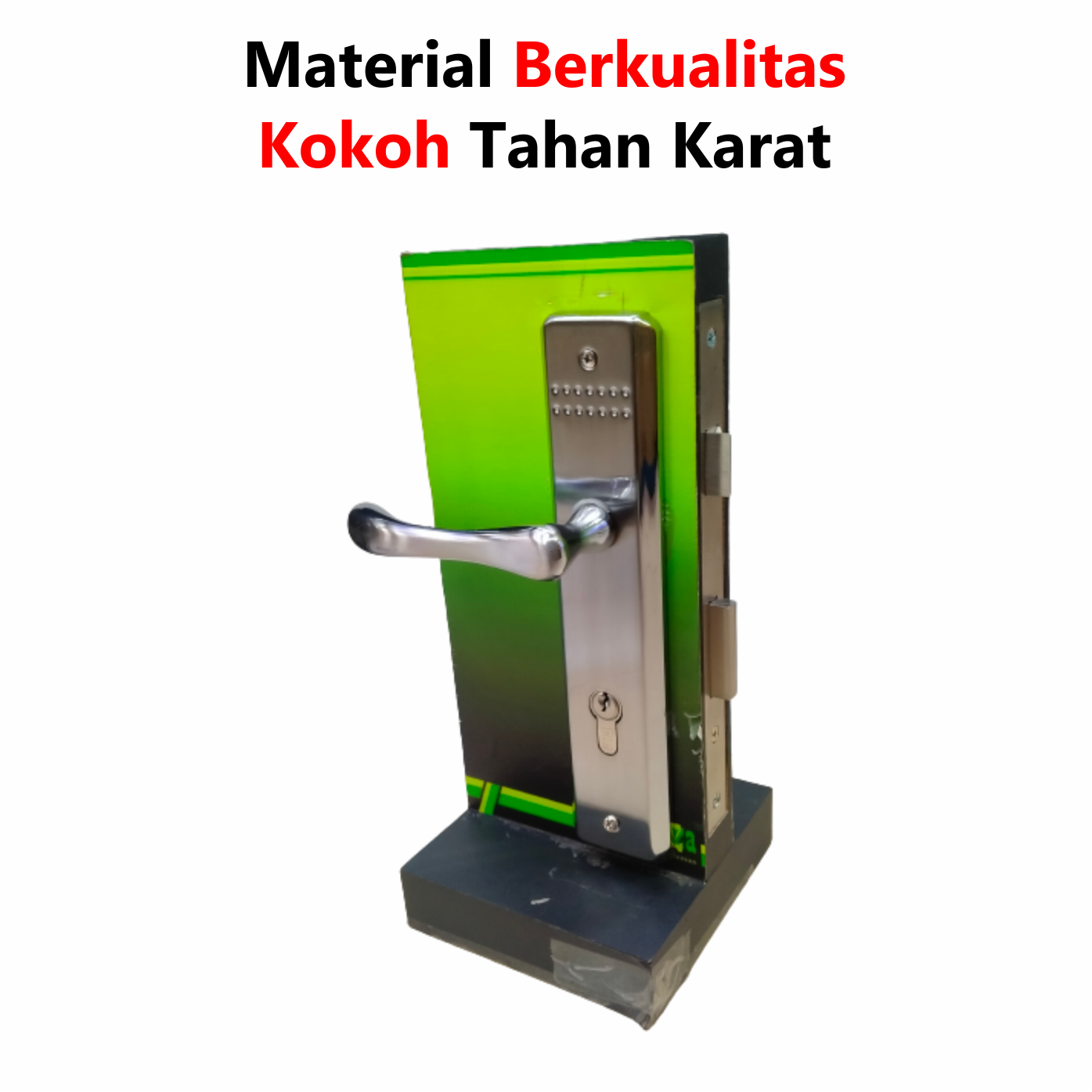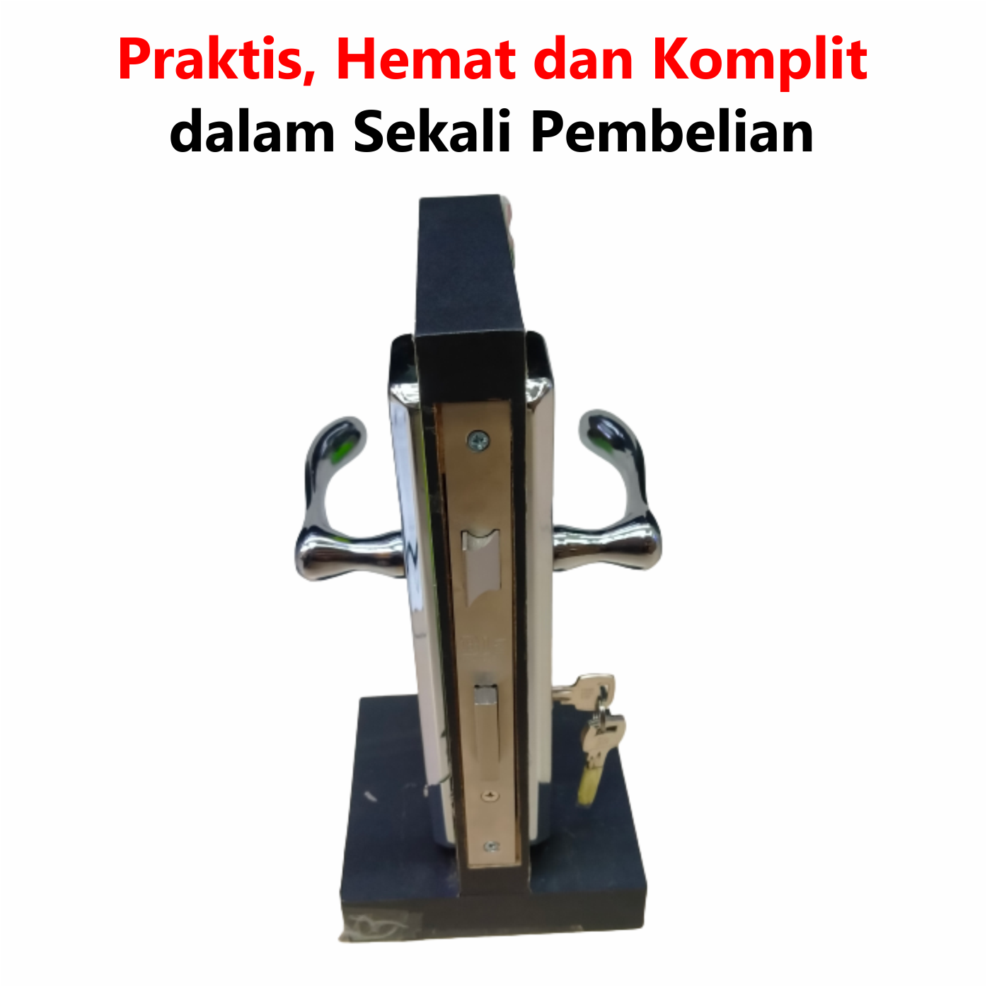 Terdiri dari tuas handle, lockcase, cylinder kunci, 3 buah anak kunci beserta sekrupnya memudahkan pemasangan tanpa meribetkan pembelian perlengkapan lain pendukung pemasangan.