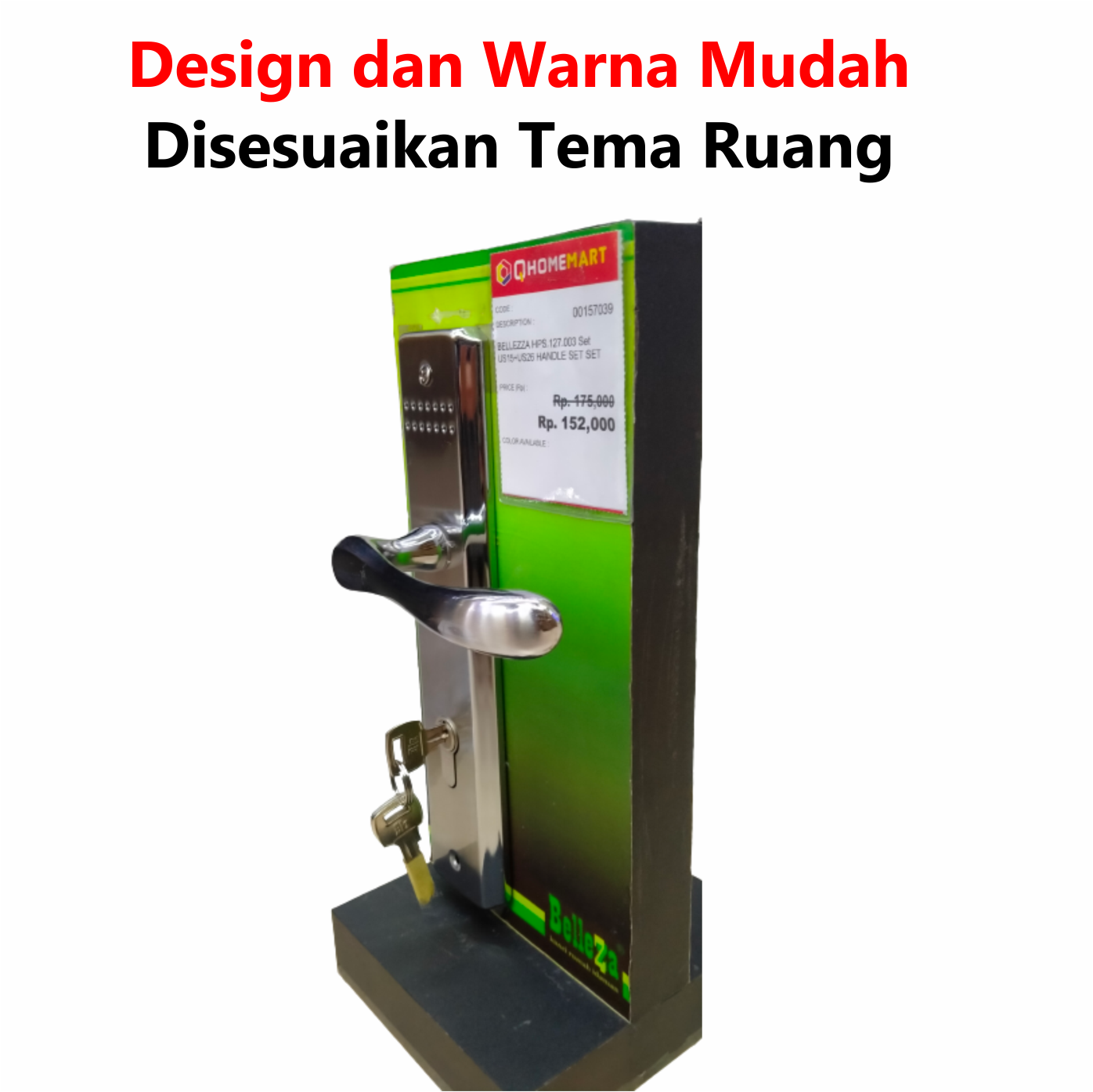 Pembelian satu set BELLEZA HPS 127 003 telah disesuaikan dengan tema dan warna yang senada sehingga set ini mudah untuk ditempatkan sebagai handle pintu rumahan, hotel maupun perkantoran.
