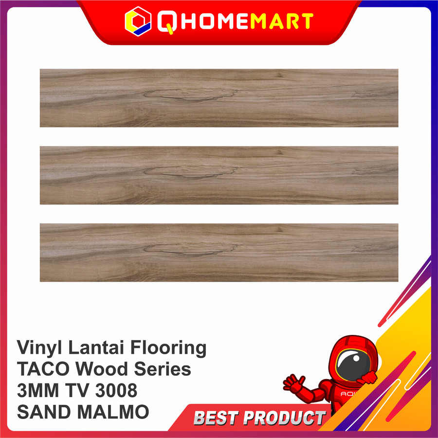 Ketebalan vinyl TACO 3 mm memiliki tekstur yang cukup fleksibel mengikuti bentuk lantai. Pastikan lantai bersih dan rata sebelum ditutup dengan vinyl. Lapisan karet bawahnya mendukung pemasangan vinyl rapat menutup lantai serta menjaga vinyl tetap kering, bebas rembes dan jamur.